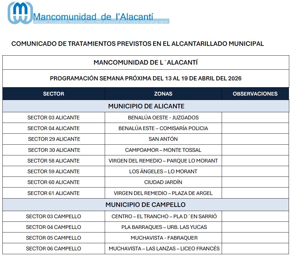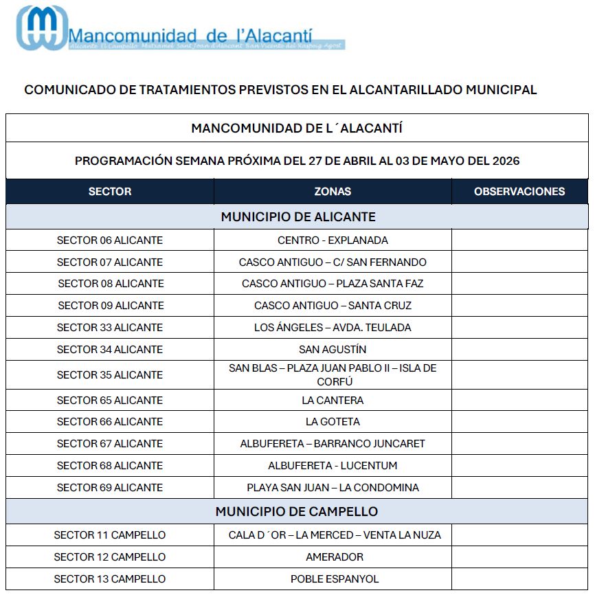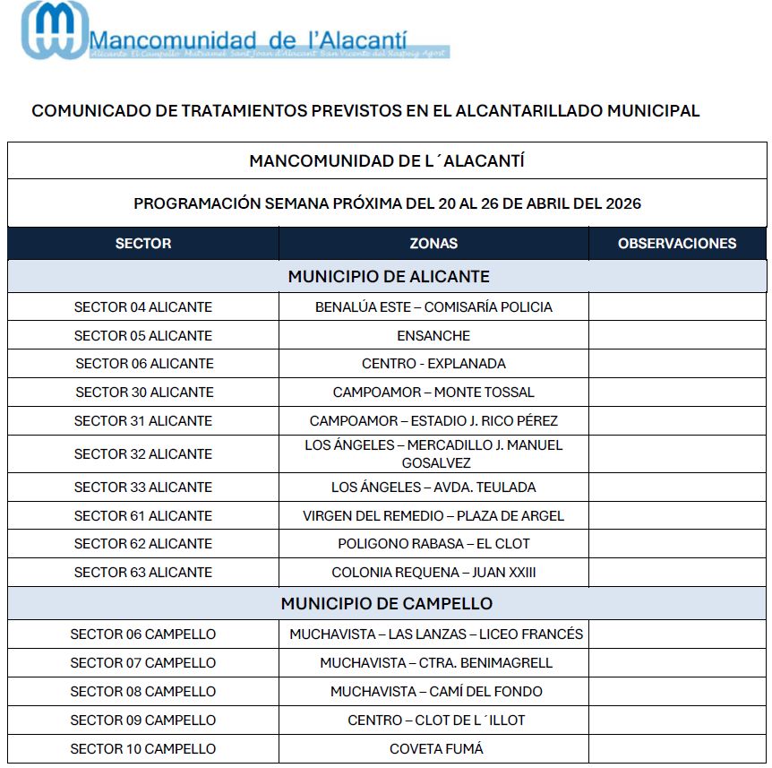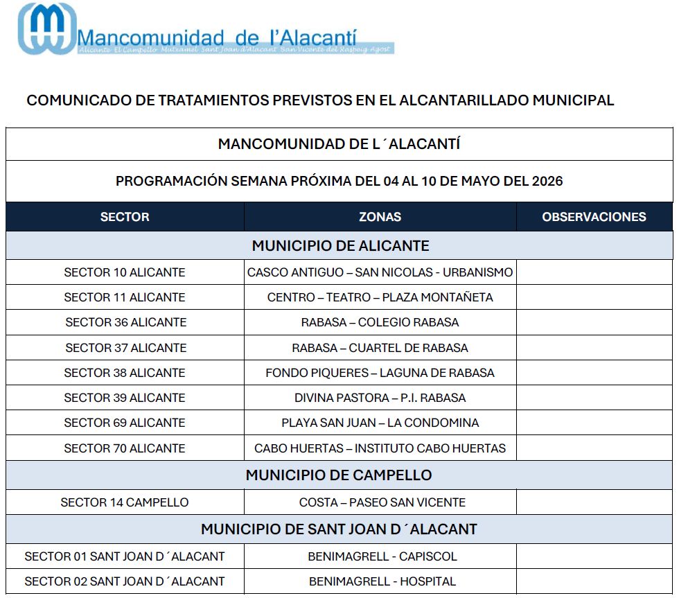 Imagen de AgostAGOSTImagen de AlicanteALICANTEcampelloEL CAMPELLOMutxamel-Casas de coloresMUTXAMELSant-Joan-Alacant-AyuntamientoSANT JOAN D’ALACANTSANT VICENT DEL RASPEIG Área Económica Denuncias Buzón de sugerencias y reclamaciones Acceso solo ayuntamientos Calendario de tratamiento de plagas 21/04/2026 Calendario de tratamiento de plagas del 27de abril al 3 de mayo de 2026 15/04/2026 Calendario de tratamiento de plagas del 20 al 26 de abril de 2026 07/04/2026 Calendario de tratamiento de plagas del 13 al 19 de abril de 2026 123…126 Siguente Atención. Mosquito Tigre.
