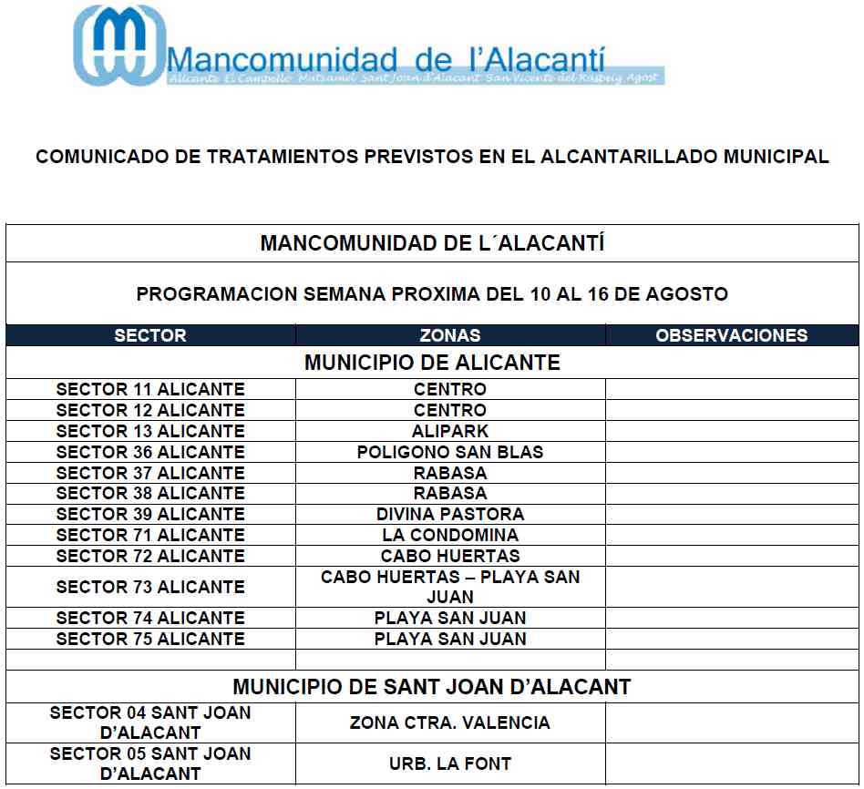 Calendario de tratamiento de plagas del 3 al 9 de agosto de 2020
