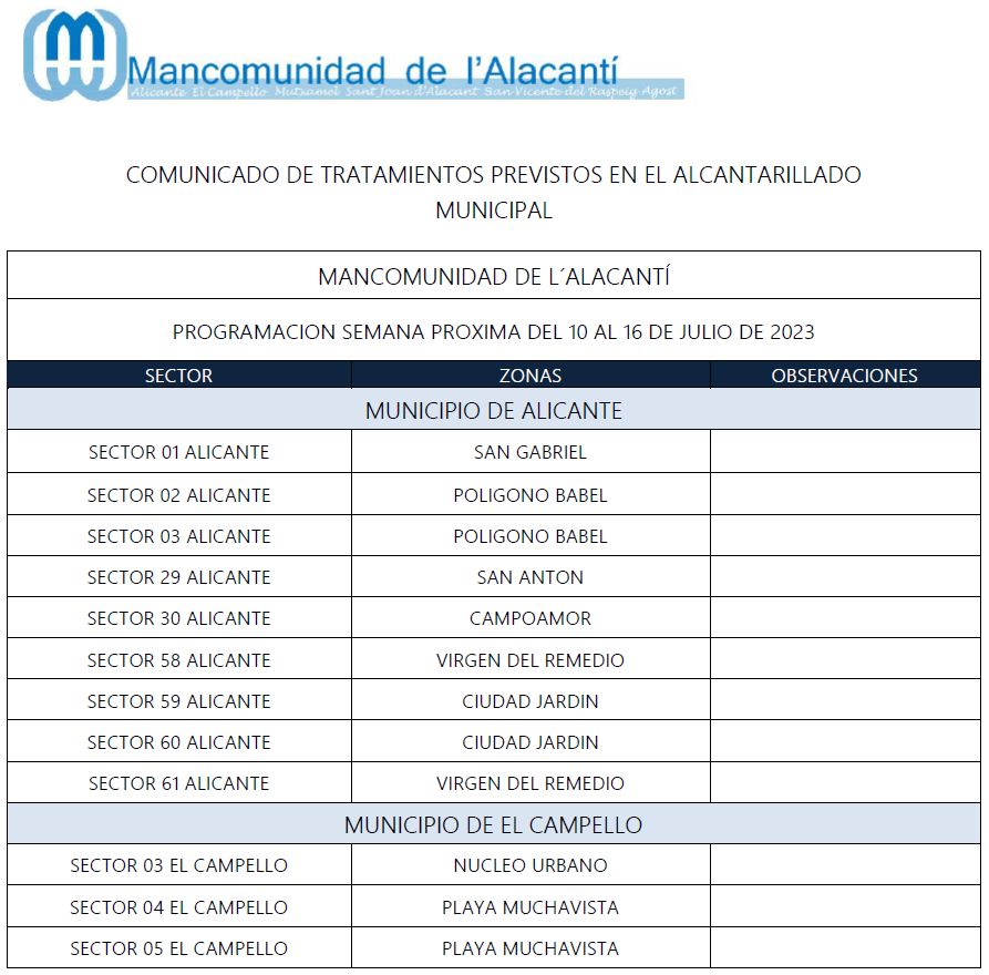 Calendario de tratamiento de plagas del 3 al 9 de julio de 2023