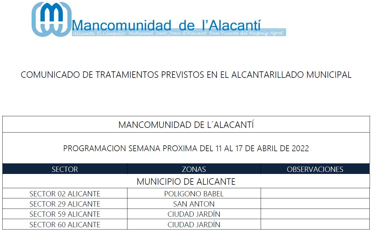 Calendario de tratamiento de plagas del 11 al 17 de abril de 2022