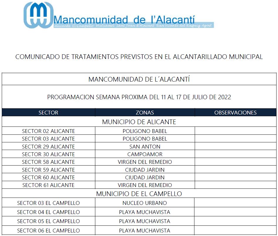 Calendario de tratamiento de plagas del 18 al 24 de julio de 2022