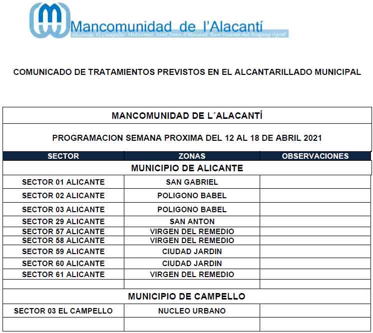 Calendario de tratamiento de plagas del 19 al 25 de abril de 2021