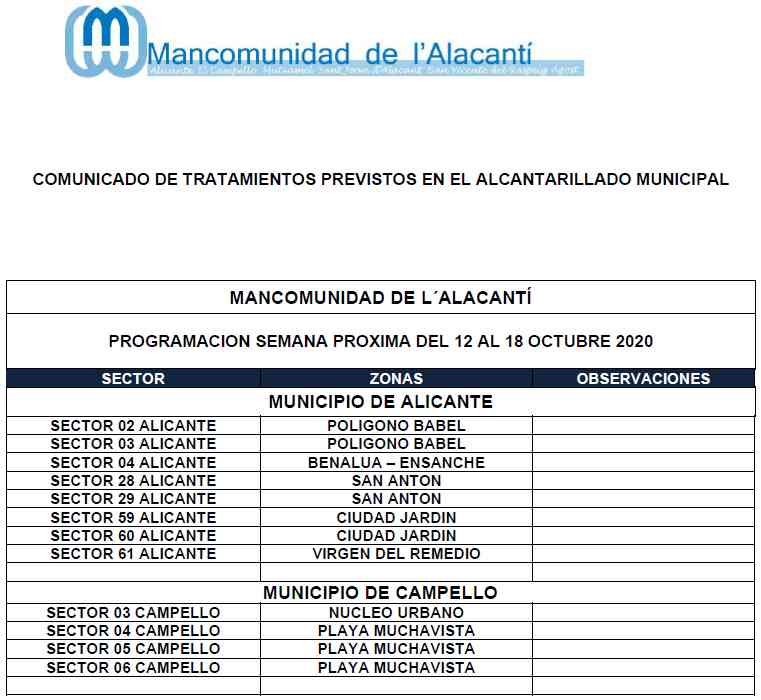 Calendario de tratamiento de plagas del 5 al 11 de octubre de 2020