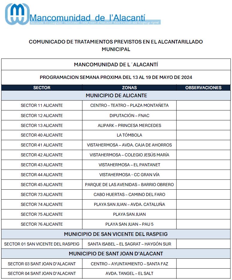 Calendario de tratamiento de plagas del 20 al 26 de mayo de 2024