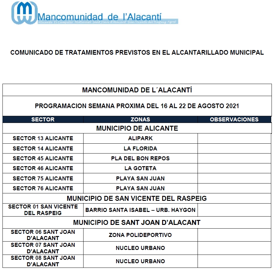 Calendario de tratamiento de plagas del 23 al 29 de agosto de 2021