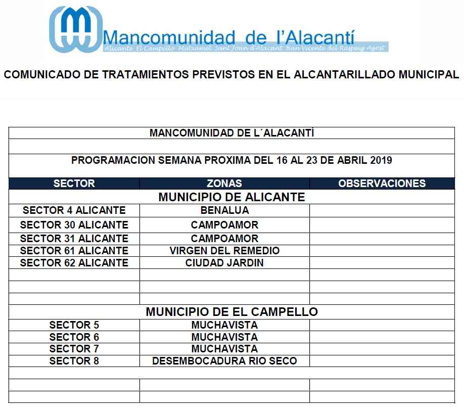 Calendario de tratamiento de plagas del 23 al 30 de abril de 2019