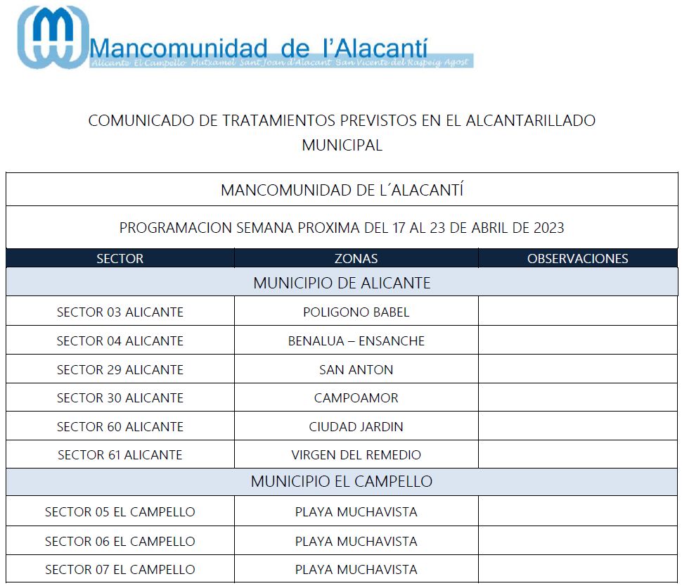 Calendario de tratamiento de plagas del 24 al 30 de abril de 2023