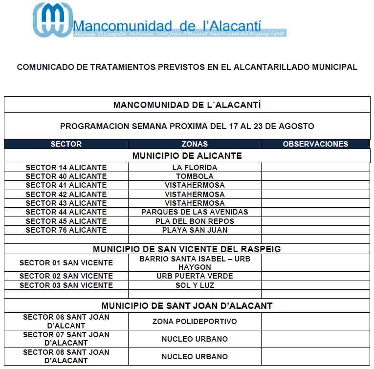 Calendario de tratamiento de plagas del 24 al 30 de agosto de 2020