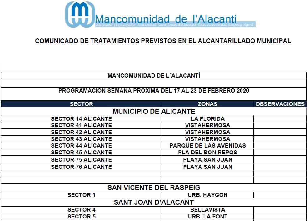 Calendario de tratamiento de plagas del 10 al 16 de febrero de 2020