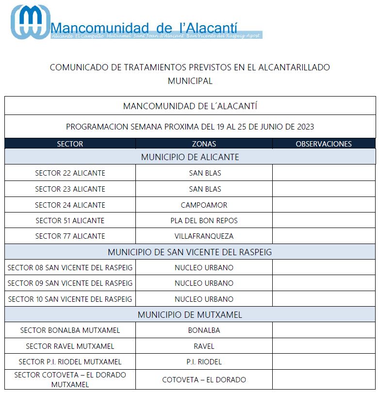 Calendario de tratamiento de plagas del 12 al 18 de junio de 2023