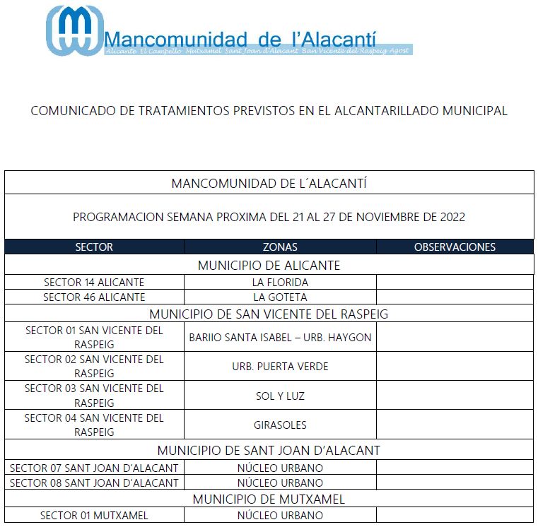 Calendario de tratamiento de plagas del 14 al 20 de noviembre de 2022