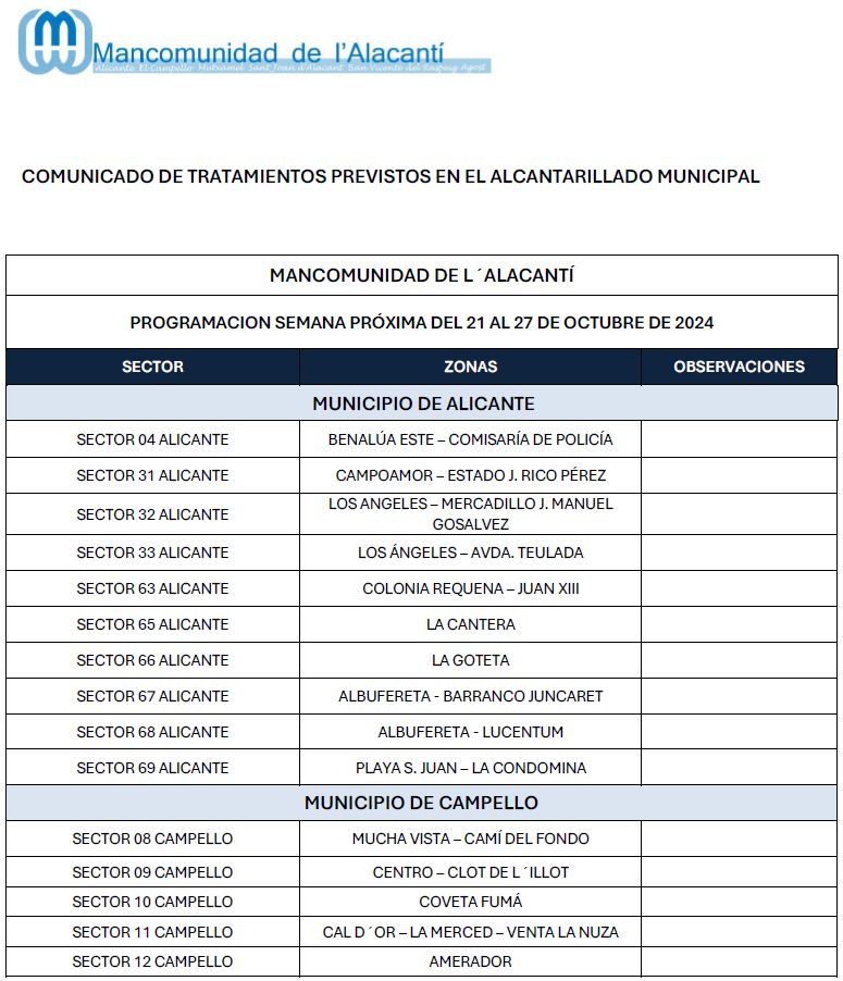 Calendario de tratamiento de plagas del 28 de octubre al 3 de noviembre de 2024