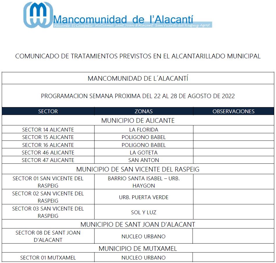 Calendario de tratamiento de plagas del 15 al 21 de agosto de 2022