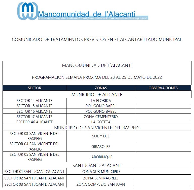 Calendario de tratamiento de plagas del 16 al 22 de mayo de 2022