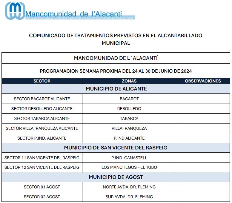 Calendario de tratamiento de plagas del 17 al 23 de junio de 2024
