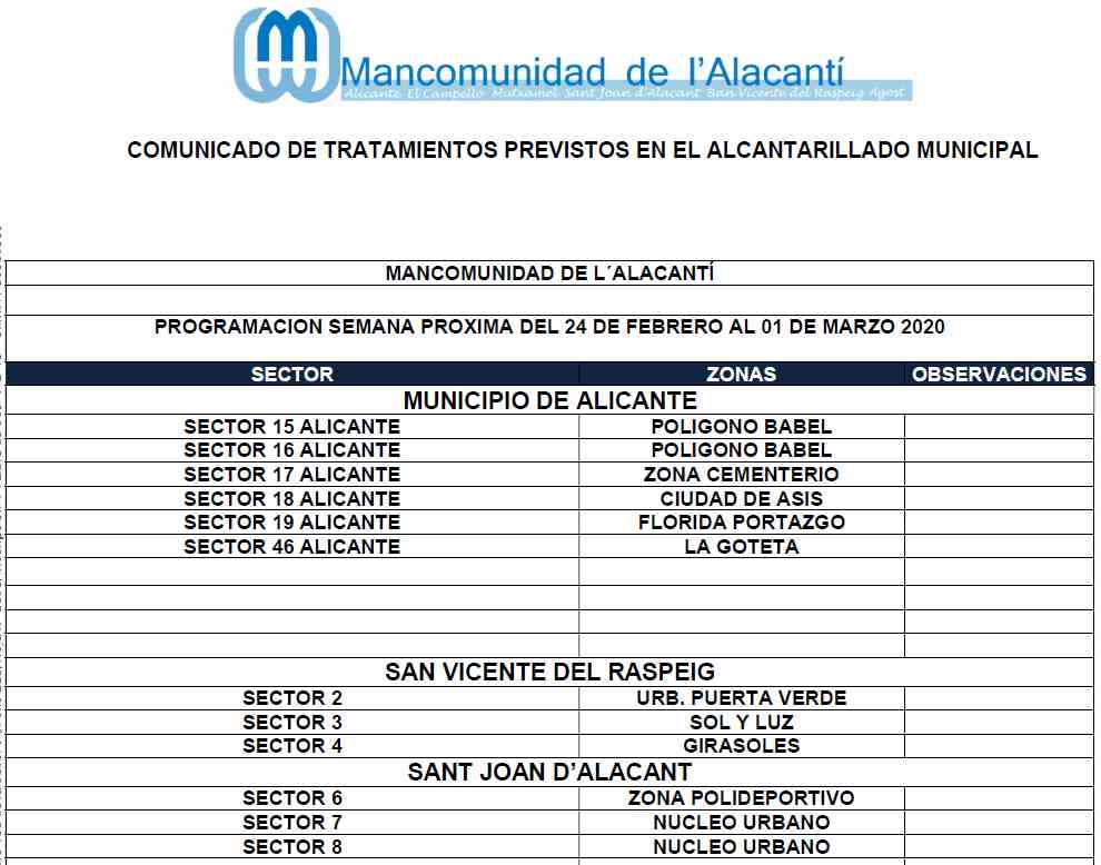 Calendario de tratamiento de plagas del 17 al 23 de febrero de 2020
