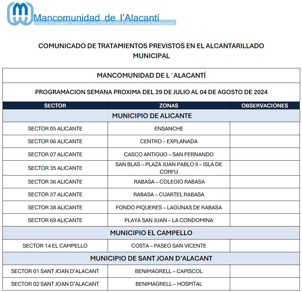 Calendario de tratamiento de plagas del 22 al 28 de julio de 2024
