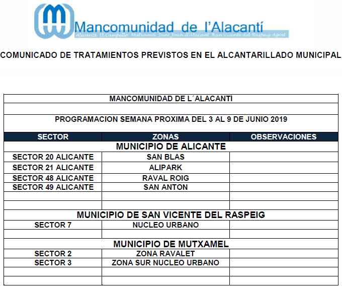 Calendario de tratamiento de plagas del 27 de mayo al 2 de junio de 2019