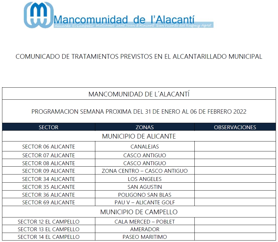 Calendario de tratamiento de plagas del 24 al 30 de enero de 2022