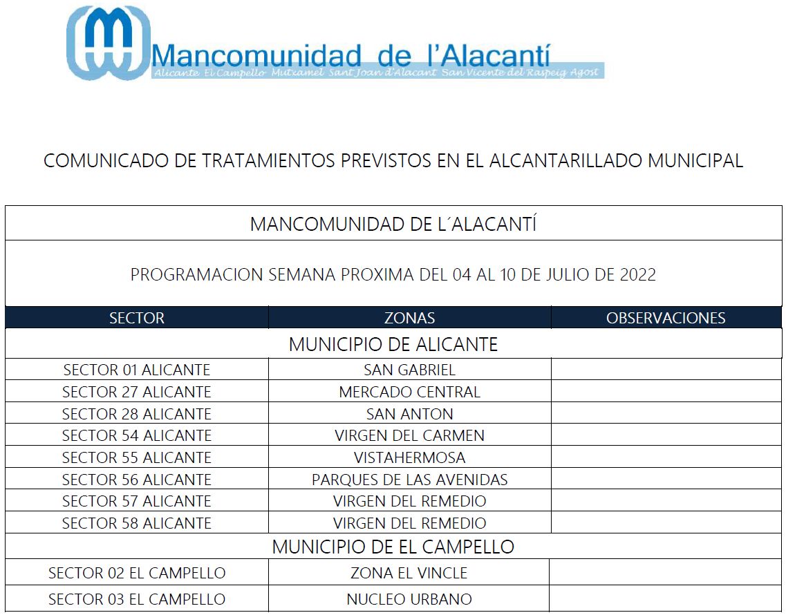 Calendario de tratamiento de plagas del 27 de junio al 3 de julio de 2022