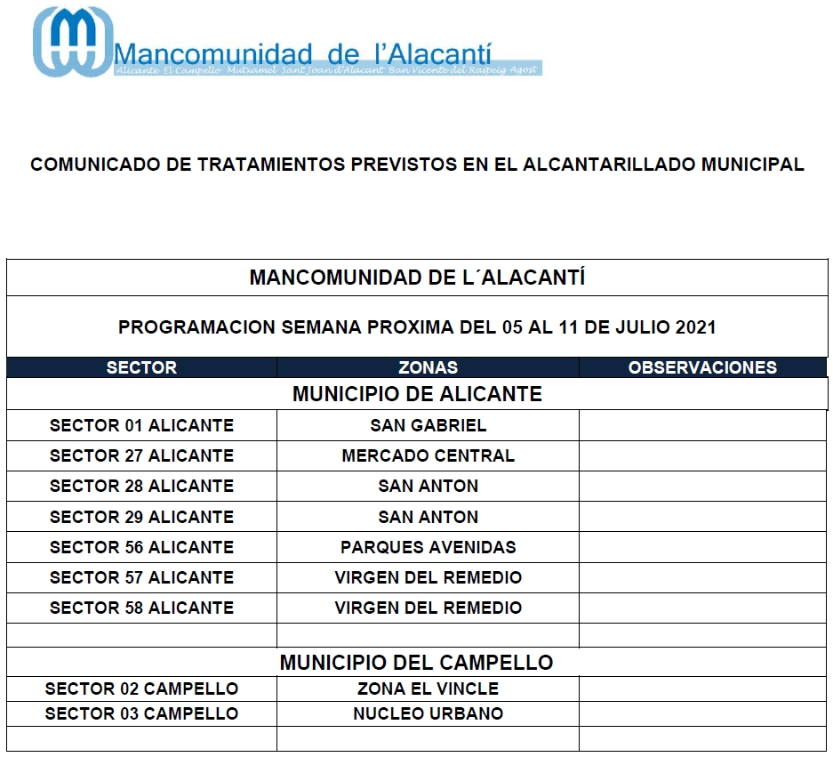 Calendario de tratamiento de plagas del 28 de junio al 4 de julio de 2021
