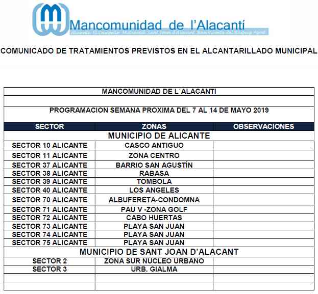 Calendario de tratamiento de plagas del 13 al 17 de mayo de 2019
