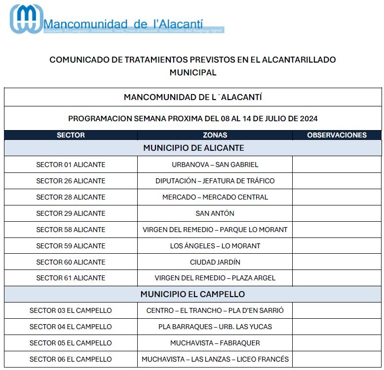 Calendario de tratamiento de plagas del 15 al 21 de julio de 2024