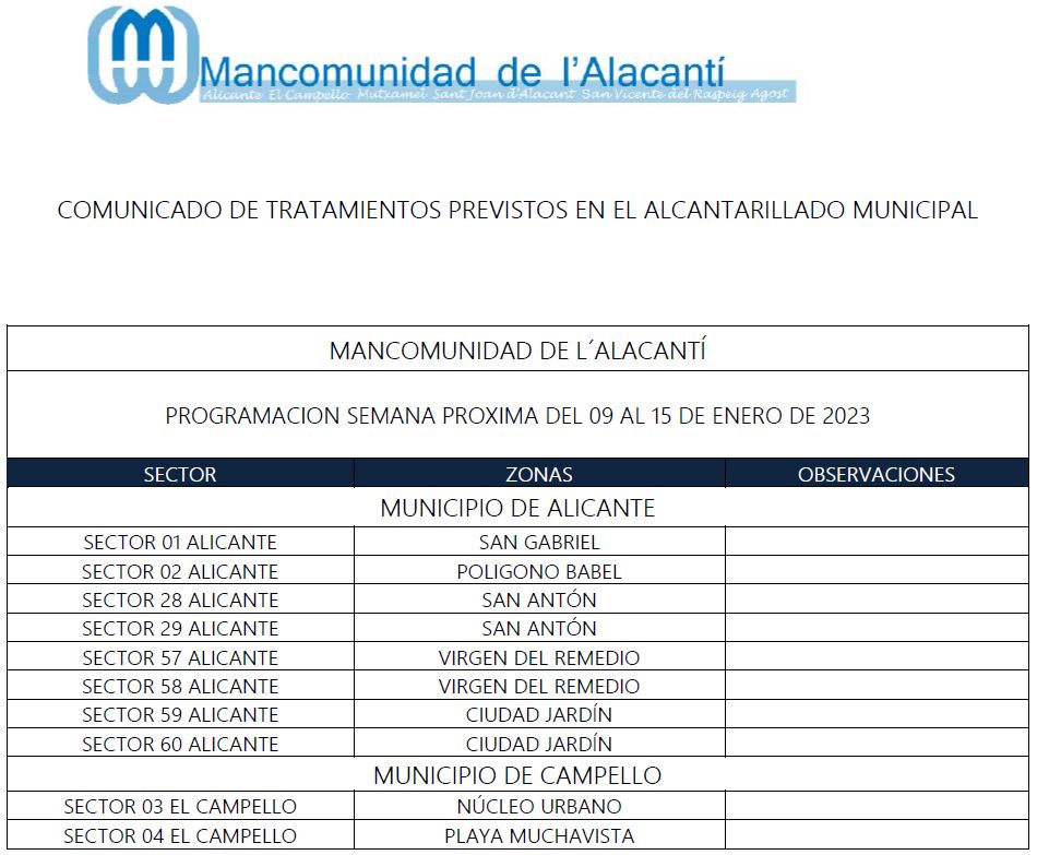 Calendario de tratamiento de plagas del 16 al 22 de enero de 2023