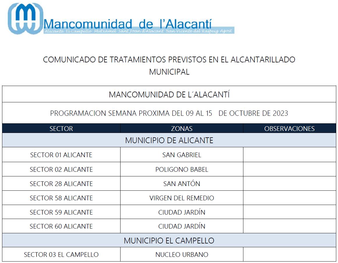 Calendario de tratamiento de plagas del 2 al 8 de octubre de 2023