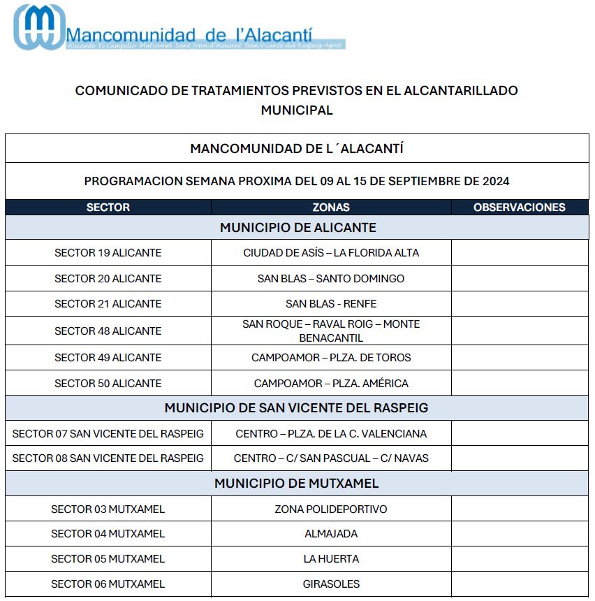 Calendario de tratamiento de plagas del 16 al 22 de septiembre de 2024